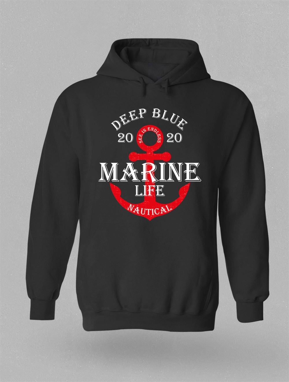 Due Yelken Temalı Baskılı Kapüşonlu Sweatshirt-B (SLHD202028B)